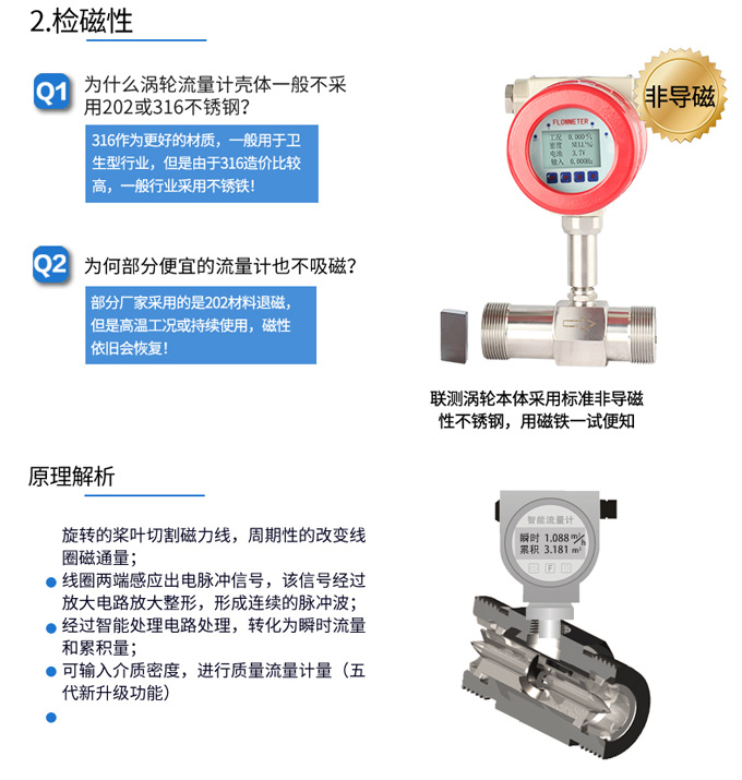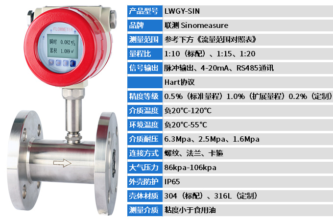 聯測LWGY-SIN液體渦輪流量計是一種速度式儀表,它具有準確度高、重復性好、結構簡單、壓力損失小、維修方便等優點,用于測量封閉管道中低粘度液體的體積流量。